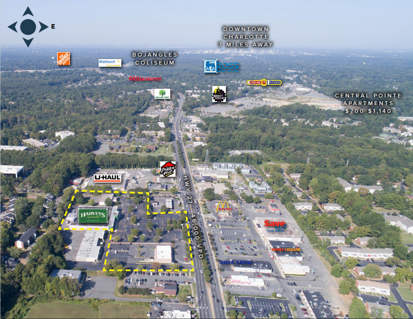52,500 SF community shopping center well located at the corner of Farm Pond Lane and Albemarle Rd in Charlotte, NC.